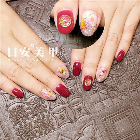 台北東區美甲 日安美甲:新年喜氣花卉風光療指甲 Bonjour Nail Salon